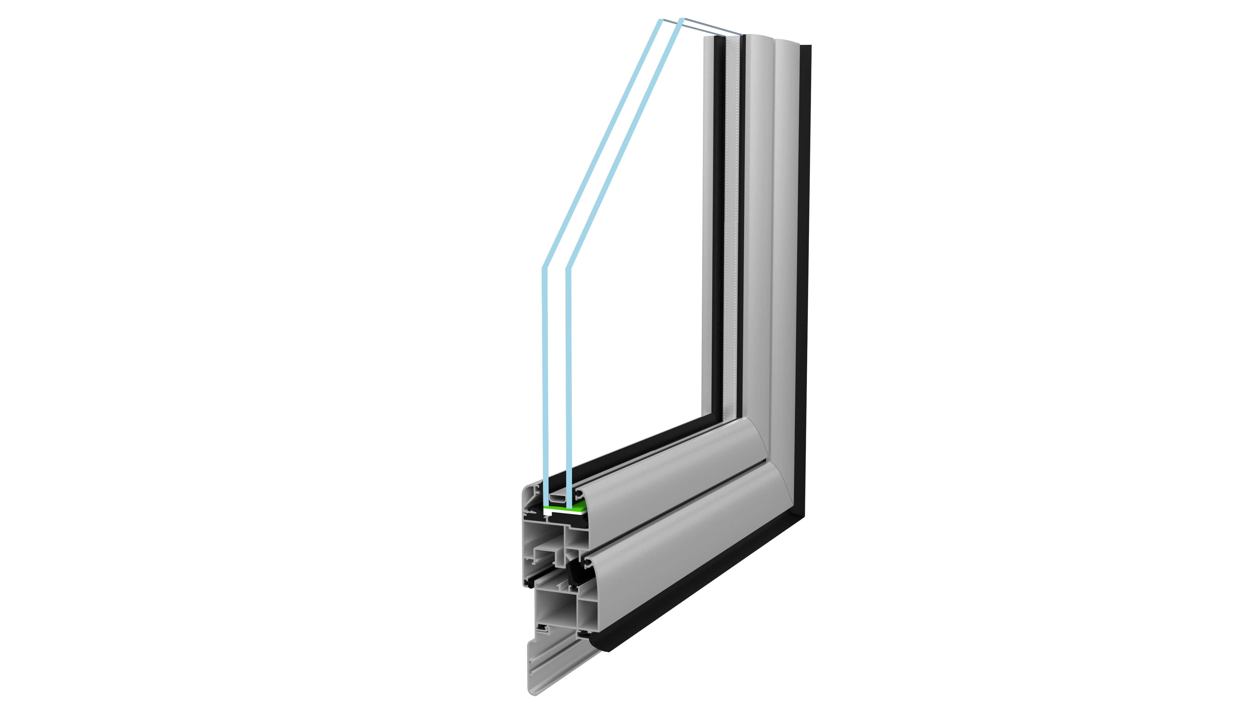 Warm edge spacer in glazing for high thermal insulation.