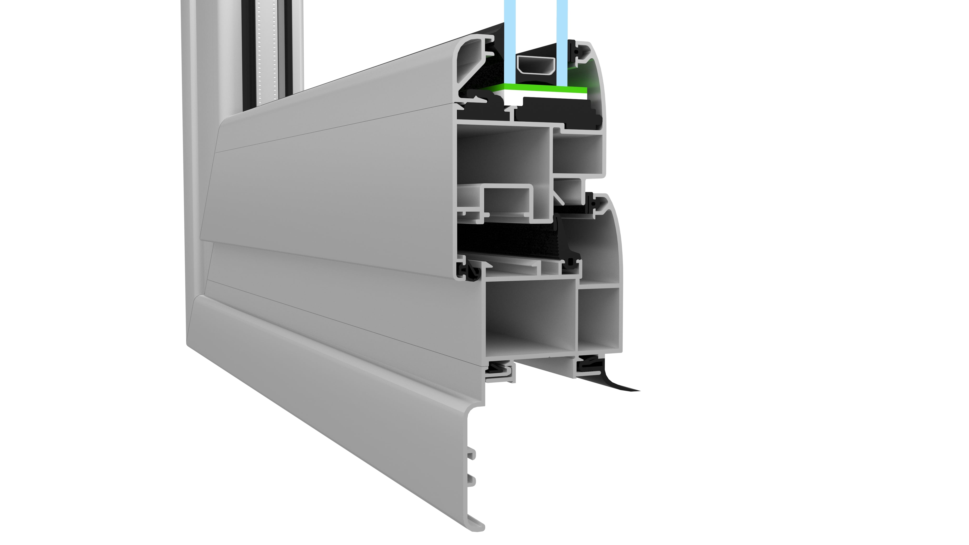 Triple perimeter sealing with artificial rubber at each contact point for high performance in insulation and watertightness.