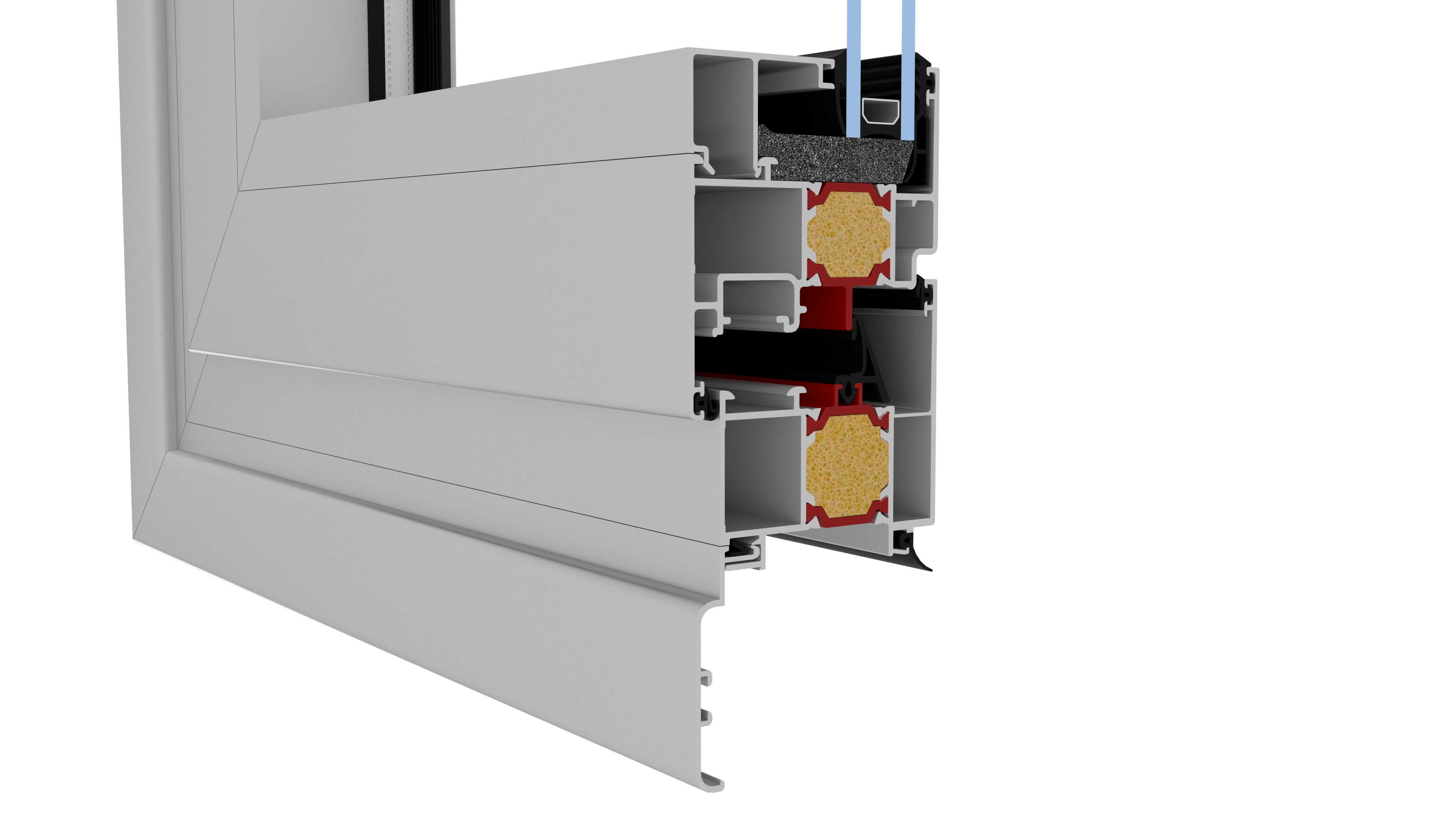 Sealed thermal break chamber with inflated insulating material of two components PU (foam), perimeter insulated energy glazing with flexible honeycombed thermal insulation casing, special spacer and high bodied rubber seals. Plus, multi-chamber central rubber is made of EPDM (artificial rubber) for absolute sealing.
